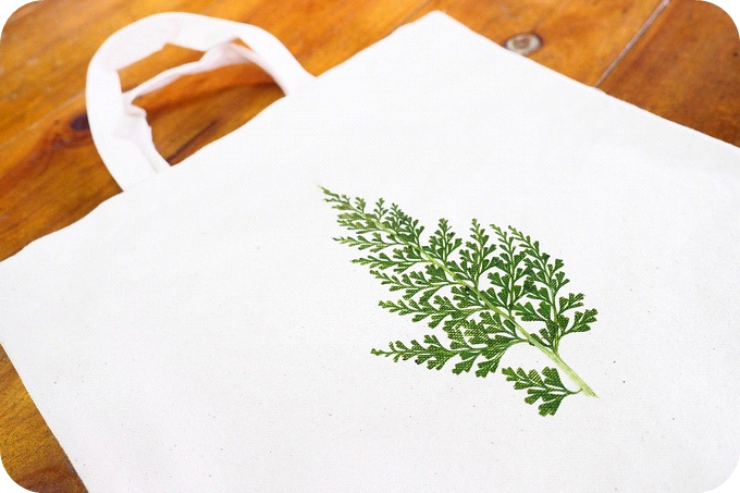 這是另一位大人學員,正在用石頭做蕨類的拓印 超漂亮!!! 這比任何現成的提袋都要好看上很多倍啊。