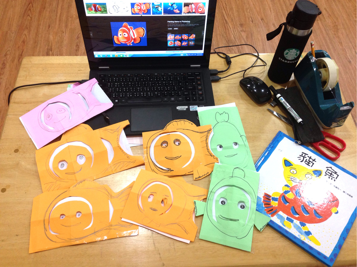 不久之前,蠟筆哥哥看完海底總動員後,就....好想擁有一隻尼莫喔,花了許多時間做了好多橘色的尼莫,似乎沒有一隻滿意的,直到看到《貓魚》這本圖畫書,發現魚可以抱耶,不如做個像抱枕一樣的,膨膨的應該不錯。